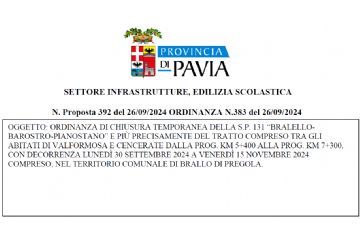 Leggi tuttoOrdinanza della Provincia di Pavia - chiusura tratto di strada