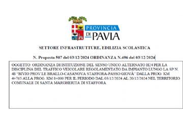 Leggi tuttoOrdinanza - Provincia di Pavia N.496 del 03/12/2024